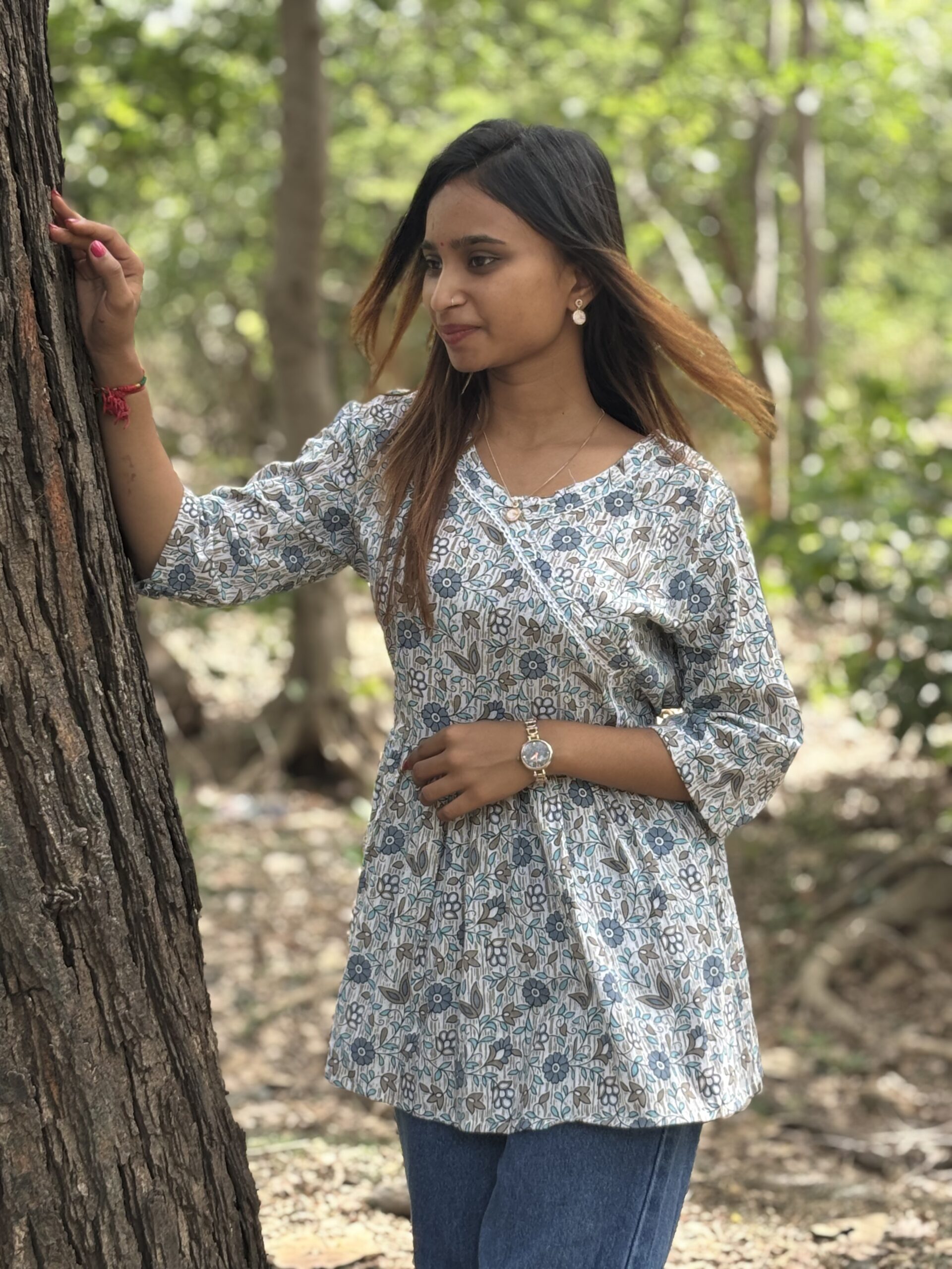 A breezy cotton kurti with delicate floral prints and a relaxed silhouette. Effortlessly elegant for everyday wear.