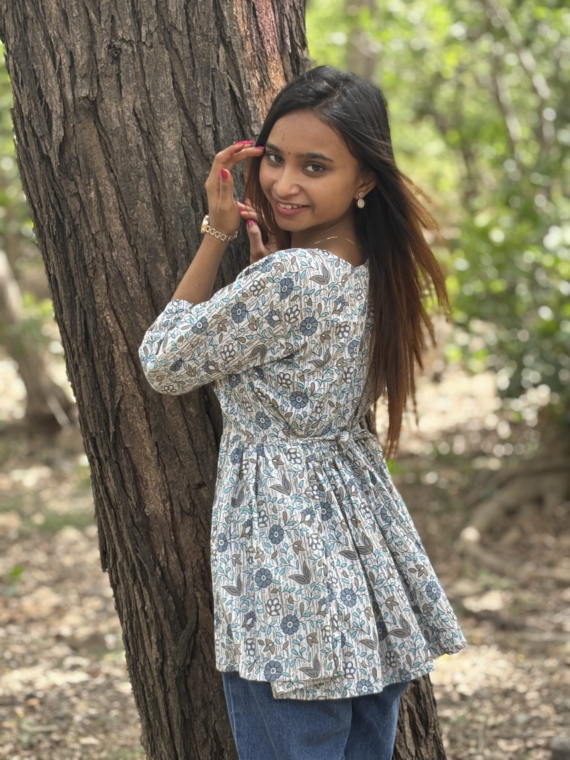 A gentle bloom in your everyday wardrobe, the Gulika Short Kurti is where simplicity meets charm. Crafted from soft cotton and adorned with delicate floral block prints, Gulika captures the essence of graceful femininity. Its easy silhouette, V-neckline, and gathered flare offer both comfort and elegance—perfect for a casual brunch, a stroll through nature, or a relaxed day at work.